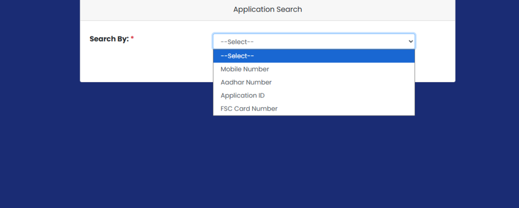 Simply go to this website Link and Select the Options like Mobile Number, Aadhar Number, Application Id, Ration Card Number. Then enter the selected detailes in the field and click submit button.